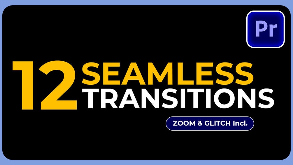 12 Seamless Transitions for Premiere Pro – Glitch, Zoom, Spin & More | Drag & Drop Pack